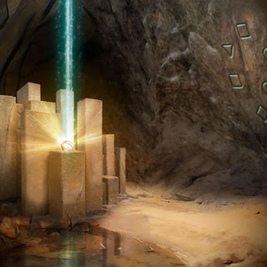 Suddenly, beams of golden sunlight burst through the opening in the fireplace, cutting through the darkness in the room. Standing back with a gasp, you look through the opening, eyes wide in awe at the beautiful, magical land from your dream on the other side.
